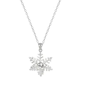 Celebrate the snowfall with the Sterling Silver Plated Snowflake Crystal Pendant. Resting from an 18-inch cable chain is an adorable 1.05-inch by 0.79-inch snowflake, sure to make a winter statement. The center of the snowflake is embellished with a clear crystal, adding a gentle touch of radiant sparkle to the piece. The perfect gift for anyone who may love the winter weather.