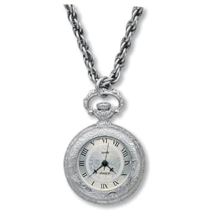 This beautiful heirloom series silver-tone antique style open pendant watch from Gotham watch is the perfect addition to your jewelry collection or an excellent gift for a loved one. Features include a unique and detailed antique style case, rich silver-tone textured dial, black Roman classic numeral markers, antique style hands plus a precision Japanese quartz movement. Also included is a 28 inch silver-tone rope chain. As always, your timepiece will arrive gift boxed and include operating instructions and a lifetime limited warranty.