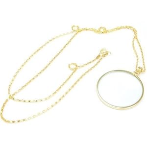 - Elegant gold-finish steel chain keeps magnifier always at hand